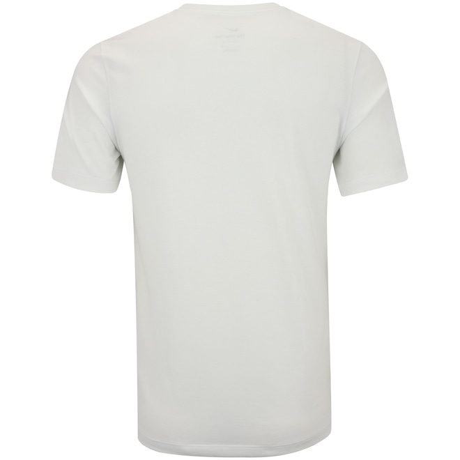 Conta ainda com mangas curtas e sua gola é careca com tira interna.