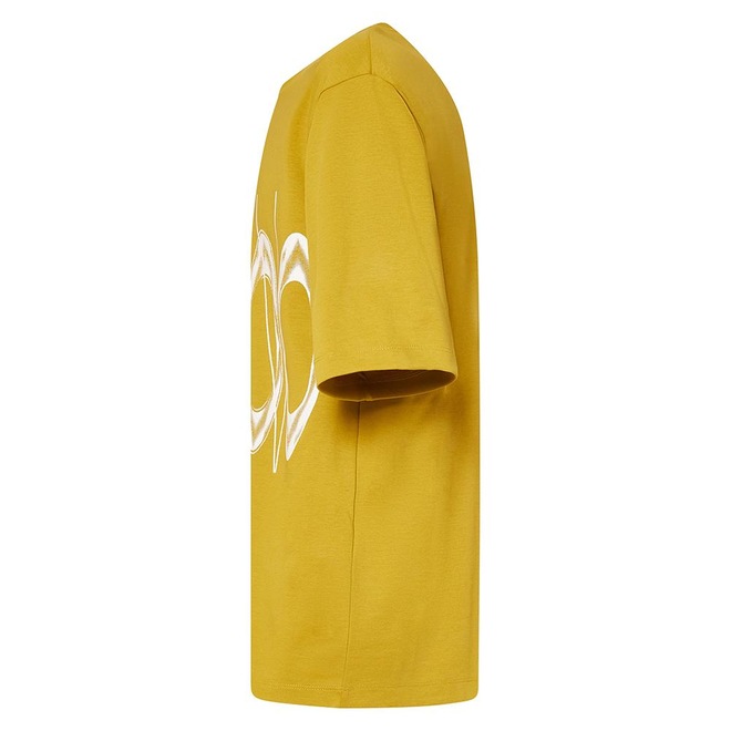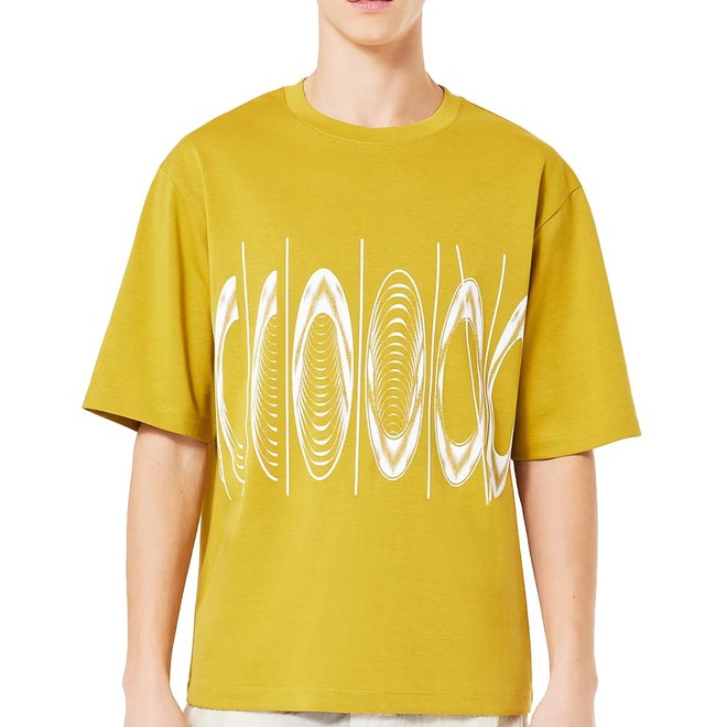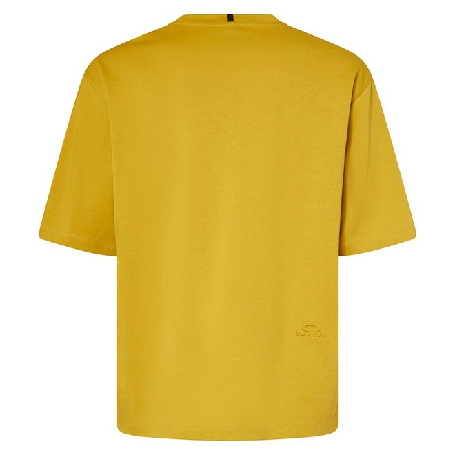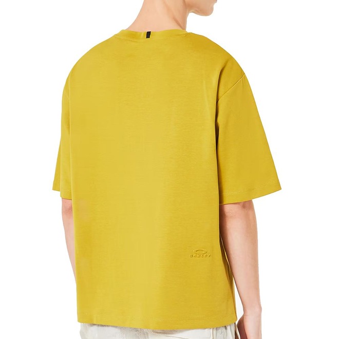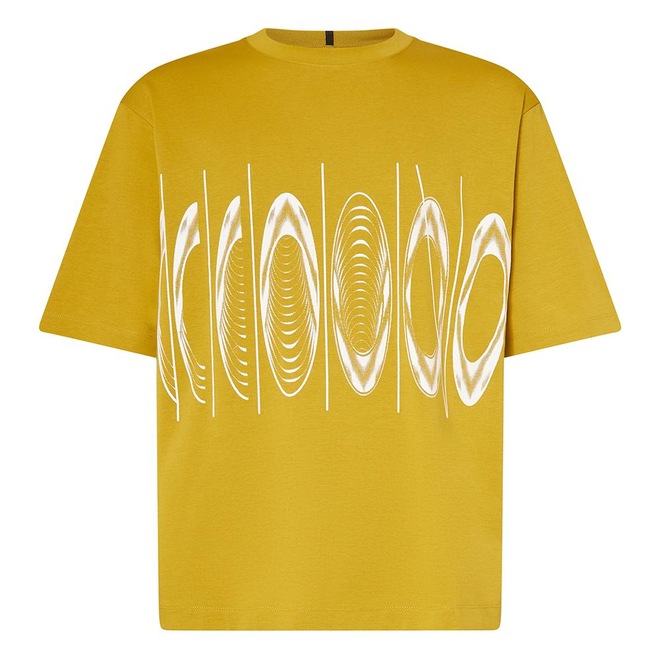 Camiseta Oakley feita em modelagem quadrada, tecido estampado, gola canelada, arte de Oakley Elipse estampada na frente, logotipo Oakley em relevo nas costas e 180 gr.