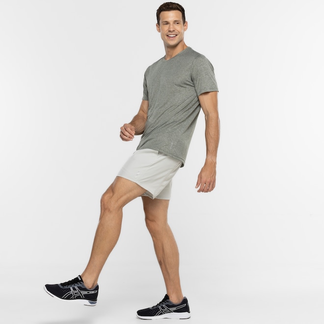 Já suas mangas são curtas, gola careca com detalhe canelado que proporcionam liberdade de movimento e um toque de frescor.