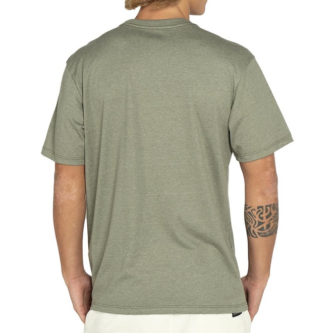 Camiseta QuikSilver feita em modelagem regular, meia malha, estampa aplicada na frente e etiqueta aplicada na manga do lado esquerdo de quem veste.