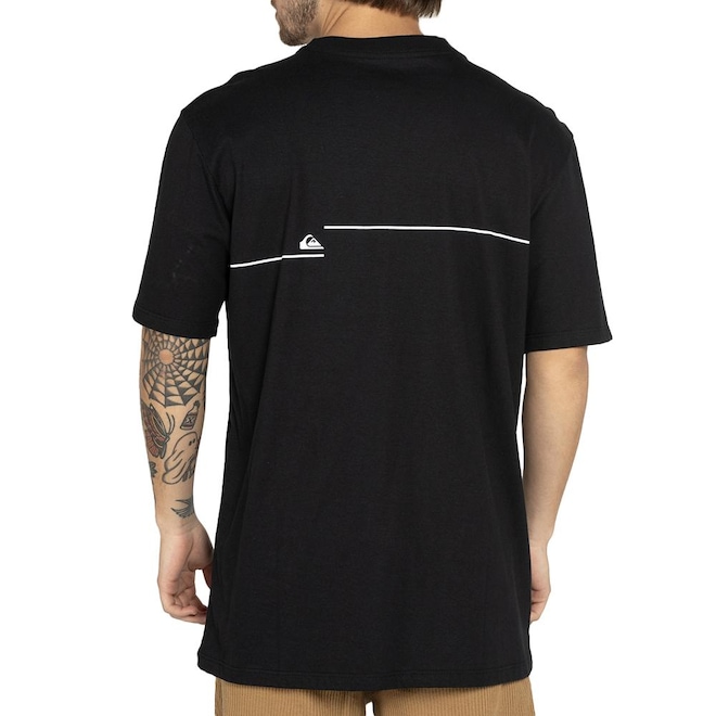 Camiseta QuikSilver feita em modelagem regular, meia malha, estampa da largura do tórax na frente e nas costas e etiqueta aplicada na manga do lado esquerdo de quem veste.
