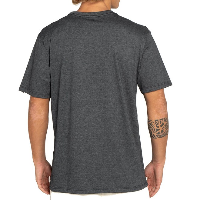 Camiseta QuikSilver feita em modelagem regular, meia malha, estampa aplicada na frente e etiqueta da marca aplicada na manga do lado esquerdo de quem veste.