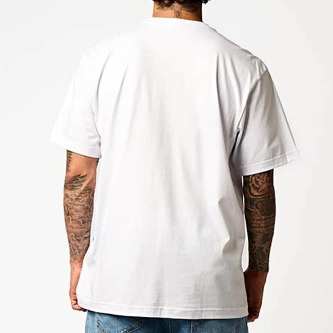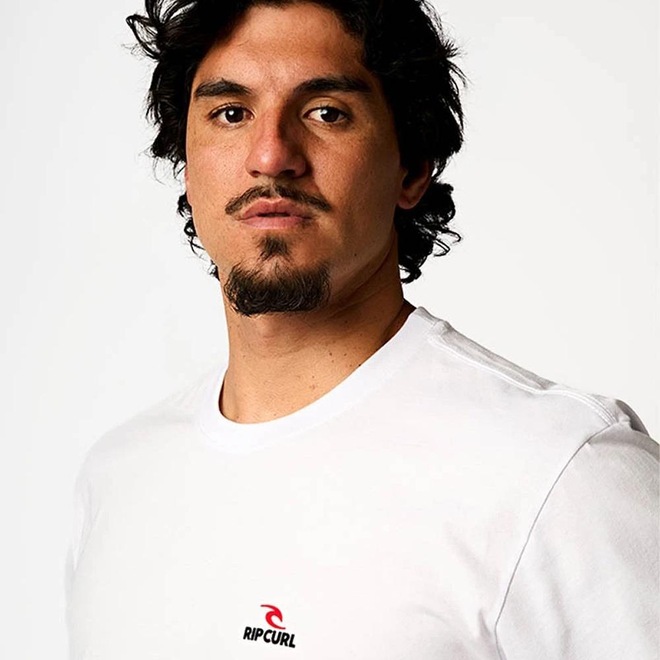 Camiseta Rip Curl feita em modelagem relaxed fit, meia malha 30.1 penteada, silk flocado frontal e etiquetas personalizadas.