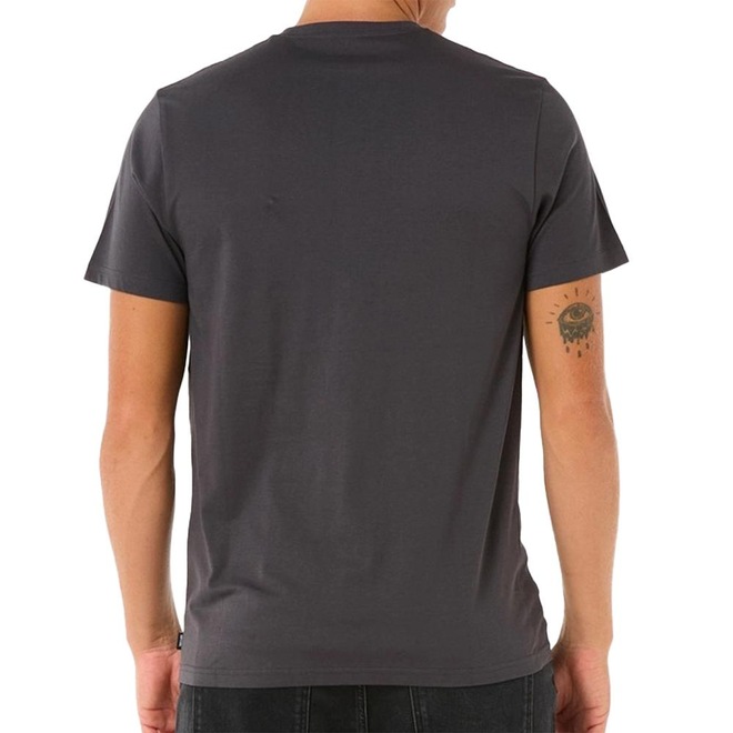 Camiseta Rip Curl feita em modelagem regular fit big blokes, meia malha 30.1 penteada e estampa frontal.