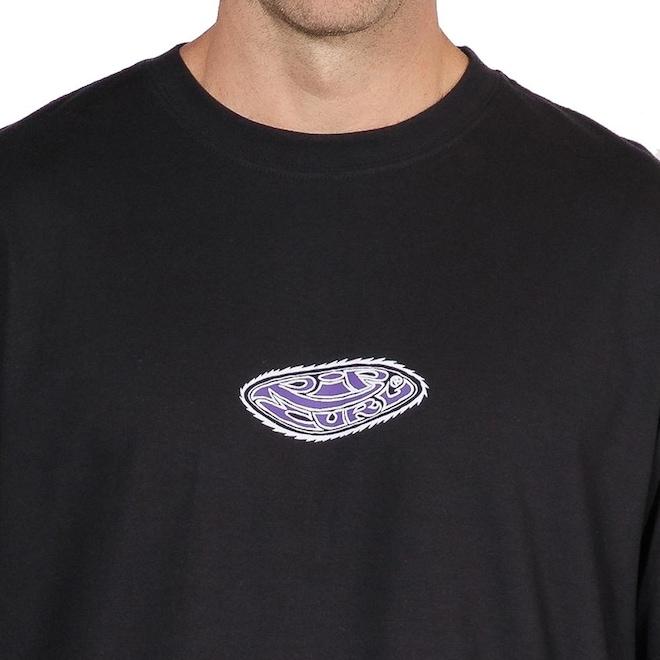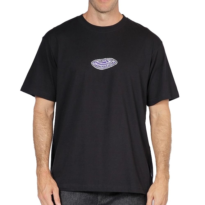 Camiseta Rip Curl feita em modelagem loose fit, meia malha 30.1 penteada, estampa frontal e etiquetas personalizadas.