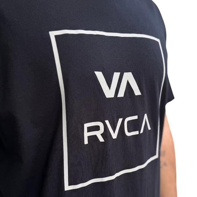 Camiseta Rvca feita em modelagem Core fit, meia malha 30.1 penteada, com estampa centralizada na frente, silk interno e tag personalizado.