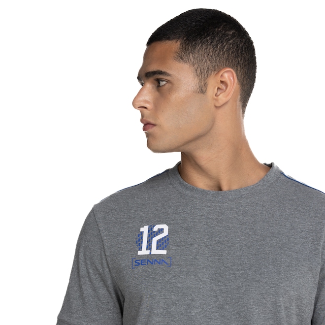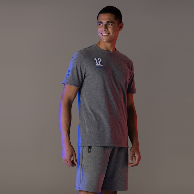 Já as estampas silkadas como o logo personalizado do “S” que retrata a curva Senna no Autódromo de Interlagos, além do icônico carro n°12 em homenagem ao primeiro campeonato mundial de 1988, valorizam o visual dessa incrível camiseta.