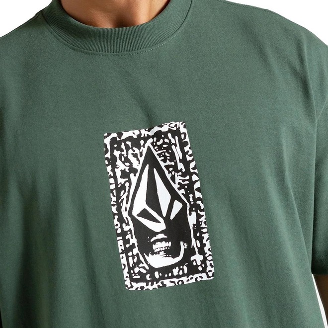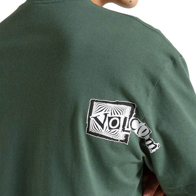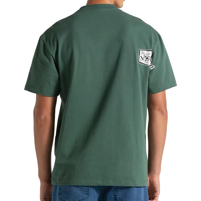 Camiseta Volcom feita em modelagem comfort, gola de 3cm, silk frontal, assinatura Volcom na manga e etiqueta Volcom na barra.
