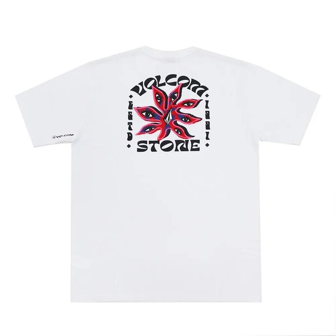 Camiseta Volcom feita em modelagem regular, meia malha 30.1, silk frente e costas, assinatura Volcom na manga, etiqueta interna e viés contrastante.