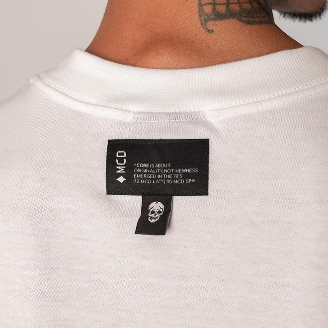 Logo MCD Frontal: O logo MCD discreto e estratégico no peito afirma a identidade da More Core Division com autenticidade.