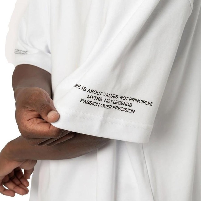 Gola ampla e reforçada com bordado MCD e estampas nas mangas;