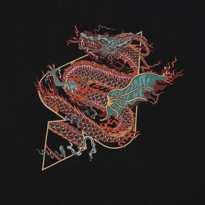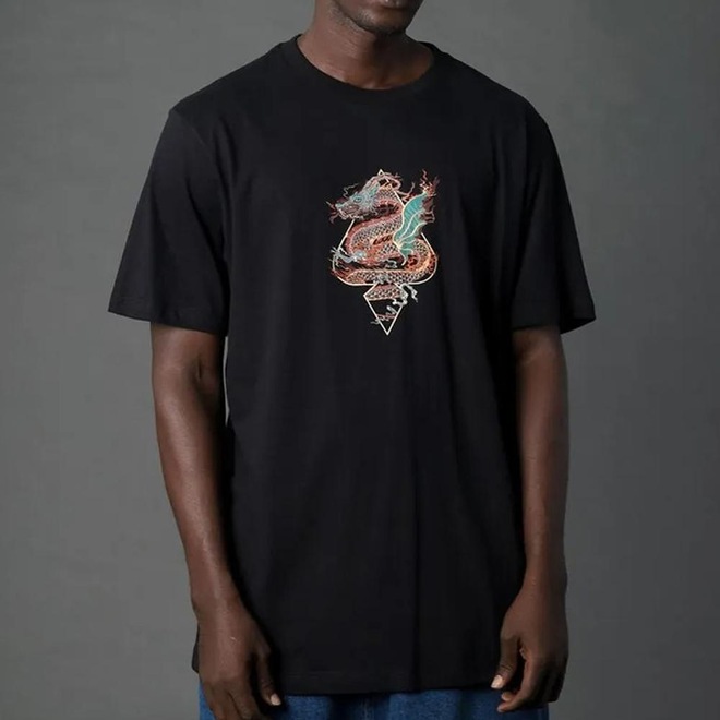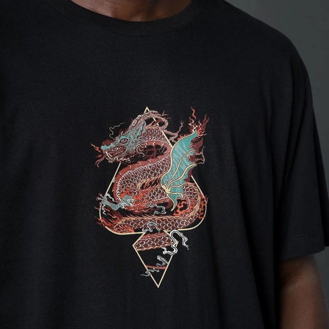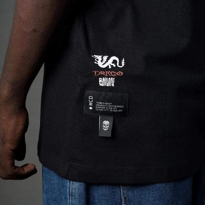 Camiseta Mcd feita em modelagem regular, estampa frontal pipa Draco MCD, reforço de gola, estampa + etiqueta Bailon acima da barra costas e tag personalizado MCD X Bailon.