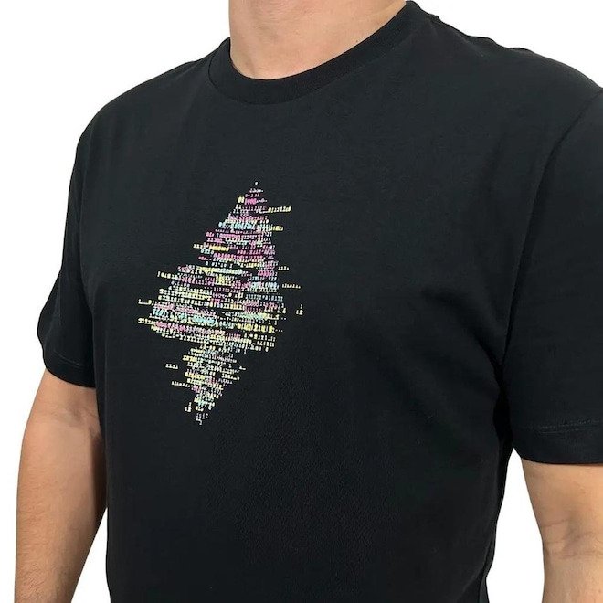 Camiseta Mcd feita em modelagem regular, malha 150g, estampa espada frontal, etiqueta espada aplicada na gola e tag especial com adesivos MCD 30 Anos.