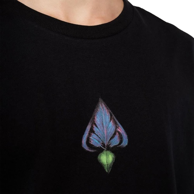 Estampa desenvolvida com Giz de cera e aplicada na peça com técnica em quadricromia;