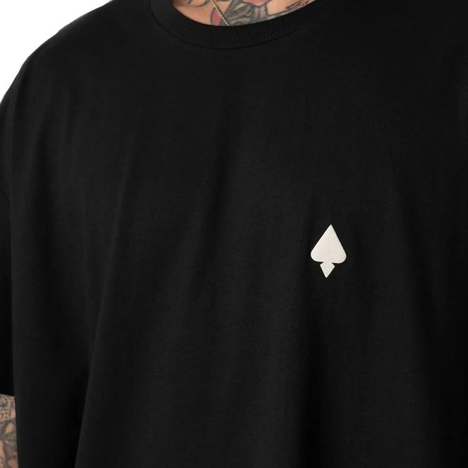 Camiseta MCD feita em meia malha penteada 30.1, logo no peito e estampa na parte de trás e etiquetas personalizadas.