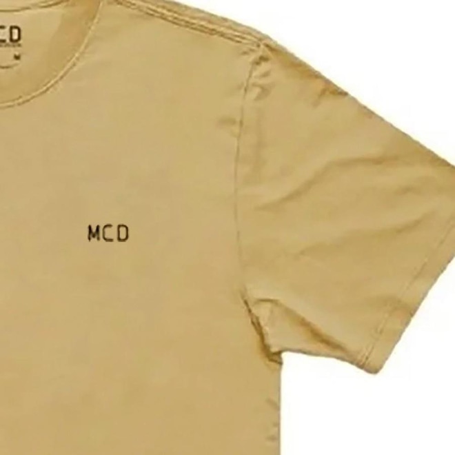 Camiseta MCD com malha penteada 30.1 silk frontal, estampa frontal, modelagem regular e etiqueta personalizada na lateral.
