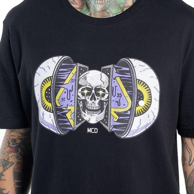Camiseta MCD com malha penteada 30.1 silk frontal, estampa traseira, modelagem regular e etiqueta personalizada na lateral.