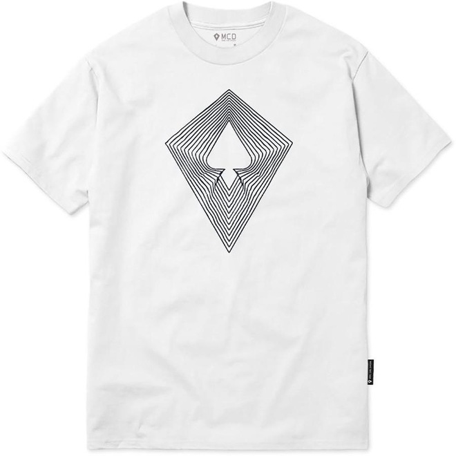 Camiseta MCD meia malha 30/1, modelagem regular, silk frontal e etiquetas personalizadas.