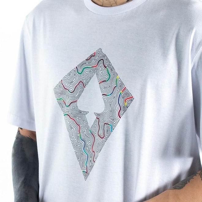 Camiseta MCD com malha penteada 30.1 silk frontal, estampa frontal, modelagem regular e etiqueta personalizada na lateral.