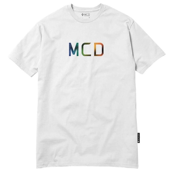 Camiseta MCD com malha penteada 30.1 silk frontal que acende quando exposto à luz, estampa traseira, modelagem regular e etiqueta personalizada na lateral.
