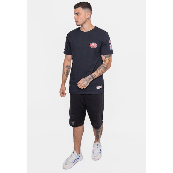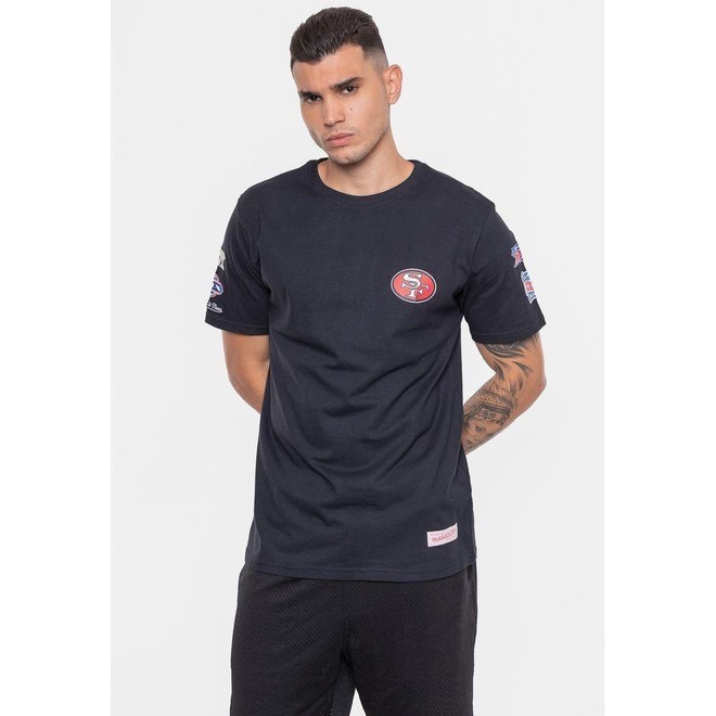 Camiseta Mitchell & Ness Masculina Superbowl Champ San Francisco 49Ers Preta - Mitchell & NessA Camisa Mitchell & Ness é a escolha perfeita para os fãs de esporte e que curtem se vestir de um jeito mais despojado. Com design moderno e ótimo caimen