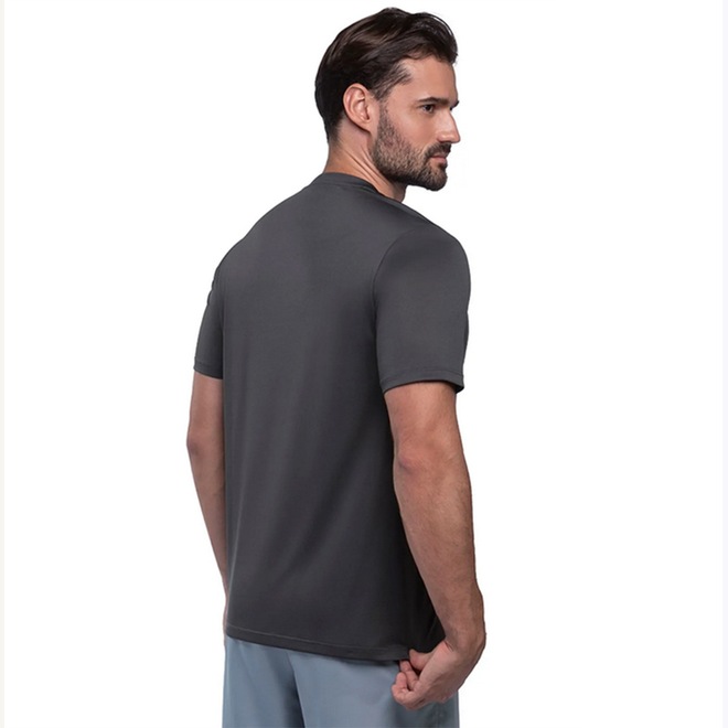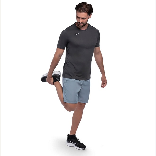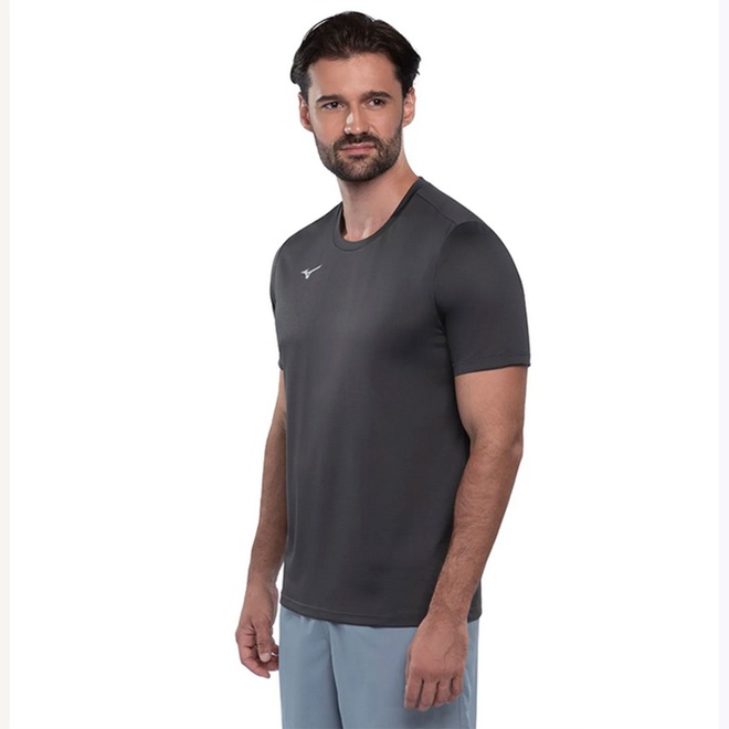 T-shirt em malha leve de poliéster, com mangas curtas e modelagem regular. O diferencial da peça está na estampa exclusiva Mizuno para um look diferenciado para o seu treino.