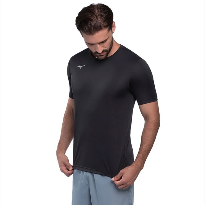 T-shirt em malha leve de poliéster, com mangas curtas e modelagem regular. O diferencial da peça está na estampa exclusiva Mizuno para um look diferenciado para o seu treino.