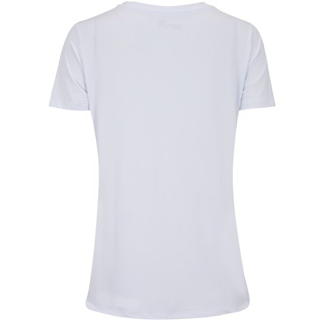 A camiseta Mizuno feminina é careca com tira interna em tecido que ajuda a diminuir o atrito de contato com a costura.