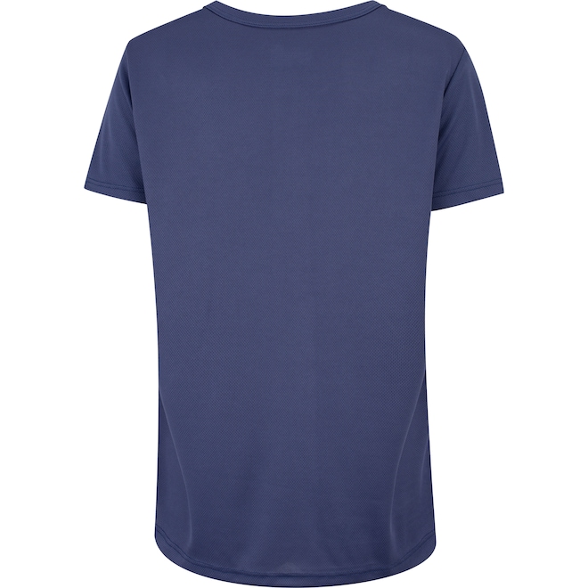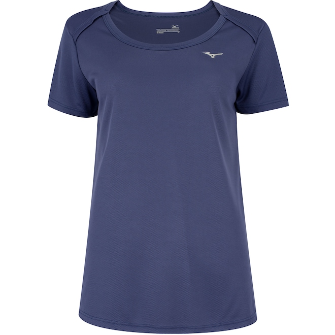 A camiseta Mizuno Feminina é de gola careca, com detalhes refletivos que facilitam a visibilidade em locais com pouca iluminação.