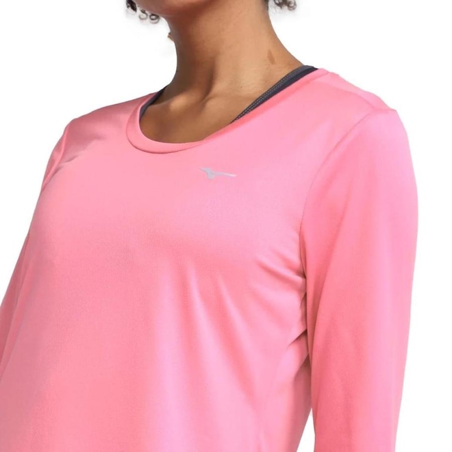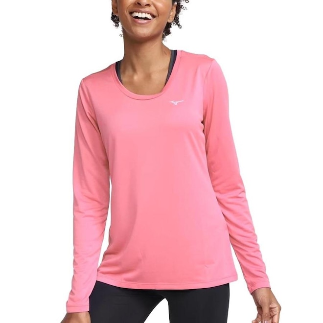 As atividades físicas ao ar livre e até mesmo na academia ficarão ainda mais completas com a camiseta manga longa da Mizuno. Possui a qualidade já conhecida da marca em todos seus detalhes e é uma excelente opção feminina.