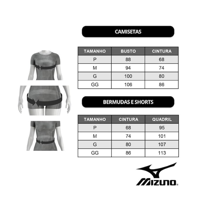 Composição do Tecido Poliéster Garantia do Fornecedor Contra Defeito de Fabricação SAC do Fornecedor MIZUNO: São Paulo e Grande São Paulo - (11) 3003-3414 / Demais regiões do Brasil - 0800-707-0566 Gola Tira interna que diminui o atrito de contato junto à pele