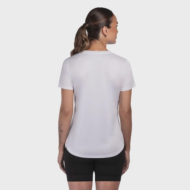 T-shirt em malha mescla em poliéster, com toque macio que vai te manter seca e confortável durante sua atividade física. Seu fit é levemente ajustado, com barra fraldada, além de decote arredondado. Possui logo da marca em transfer refletivo prata.