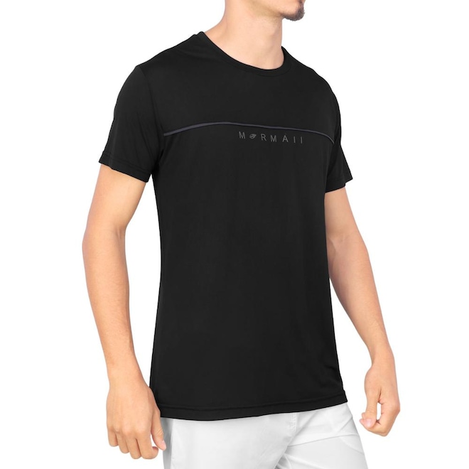- Detalhamento: Camiseta gola careca, manga curta. A camiseta possui uma faixa horizontal sutil na altura do peito, acompanhada do logo e nome Mormaii em tom cinza discreto, criando um visual moderno e minimalista que valoriza o design esportivo. Logo da marca na parte de trás próximo ao pescoço, caimento tradicional, tecido leve e confortável;