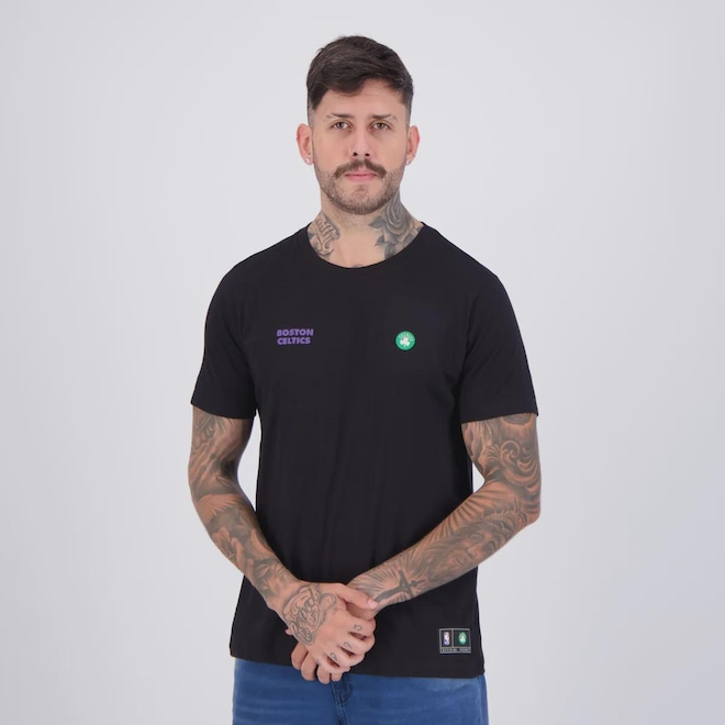Composição: 100% Algodão Cor predominante: Preta Indicado para: Casual Gênero: Masculino Origem: Nacional Time: Celtics Logo: Aplicada Manga: Curta Gola: Careca Dimensões Aproximadas (A x L): P: 70 x 49 cm M: 72 x 51 cm G: 74 x 53 cm GG: 76 x 55 cm