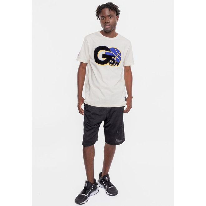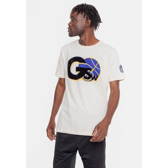 Camiseta Nba Floco Golden Stante Warriors Off White - Nba - MasculinoCamiseta NBA Floco Golden Stante Warriors Off White