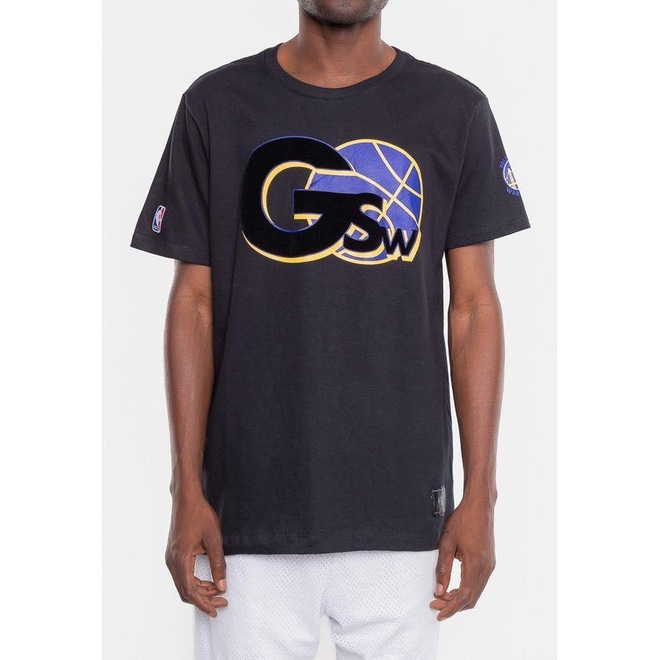 Camiseta Nba Floco Golden Stante Warriors Preta - Nba - MasculinoCamiseta NBA Floco Golden Stante Warriors Preta
