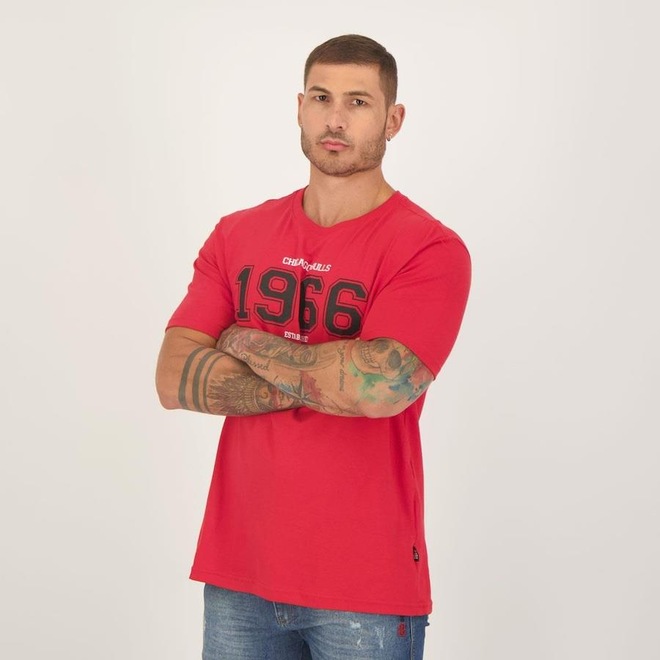 Cor predominante: Composição: 100% Algodão Indicado para: Casual Time: Chicago Bulls Escudo: Estampado Gênero: Masculino Origem: Nacional Manga: Curta Gola: Careca Dimensões aproximadas (A x L): P: 72 x 53 cm M: 74 x 55 cm G: 76 x 57 cm GG: 78 x 59 cmref: M0ZT4W