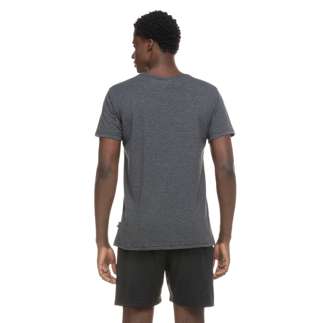 A camiseta Especial masculina tem mangas curtas e gola careca.