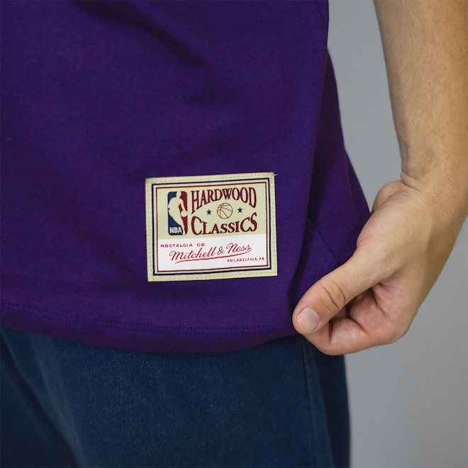 A camisa é uma peça dos Los Angeles Lakers, confeccionada na cor roxa, característica do time.