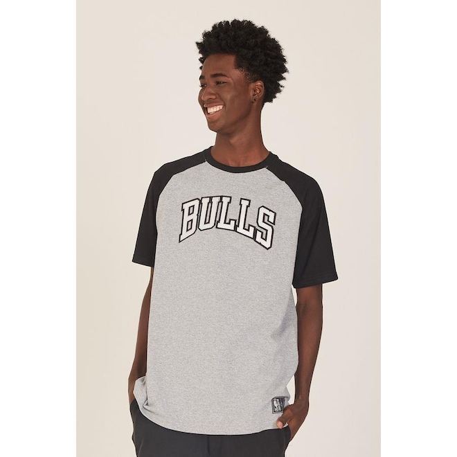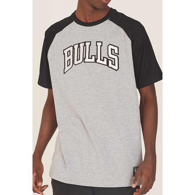 Camiseta NBA Raglan Estampada Chicago Bulls Casual Mescla - Masculina