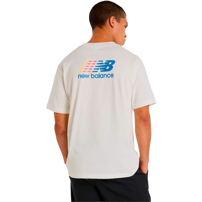 Esta Camiseta New Balance Athletics Multi Color Masculina proporciona um estilo moderno para atualizar sem esforço o seu vestuário diário. A peça foi confeccionada com 100% algodão para uma sensação de conforto, possui mangas curtas, gola redonda, e impresssão gráfica para maior estilo. Perfeita para compor os seus looks! Gola redonda;100% algodão;Impressão gráfica.