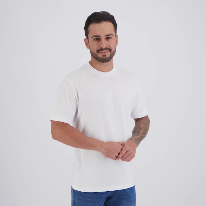 Composição: 100% Algodão Cor predominante: Branca Indicado para: Casual Gênero: Masculino Origem: Nacional Logo: Bordada Manga: Curta Gola: Careca Dimensões aproximadas (A x L): P: 70 x 50 cm M: 72 x 53 cm G: 74 x 57 cm GG: 75 x 62 cm