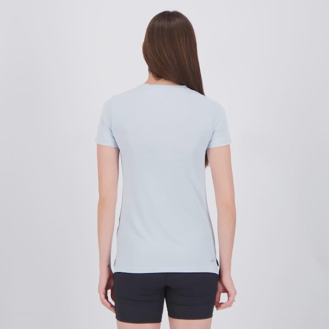 Tecnologia NB Dry: Auxilia o tecido a eliminar a umidade provocada pela transpiração, de modo a manter o corpo seco e fresco. Composição: 100% Poliamida Cor predominante: Azul celeste Indicado para: Treino Gênero: Feminino Origem: Nacional Logo: Estampada Manga: Curta Gola: Careca Dimensões aproximadas (A x L): P: 61 x 41 cm M: 63 x 43 cm G: 65 x 45 cm GG: 67 x 47 cm