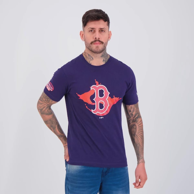 Composição: 100% Algodão Cor predominante: Marinho Time: Boston Red Sox Gênero: Masculino Escudo: Estampado Origem: Nacional Manga: Curta Gola: Careca Dimensões aproximadas (A x L): P: 72 x 48 cm M: 74 x 53 cm G: 75 x 55 cm GG: 77 x 57 cm