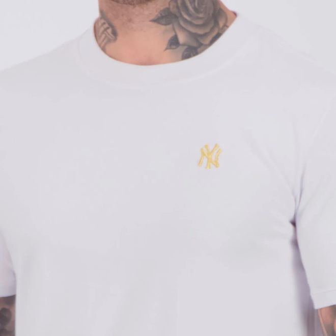 Composição: 100% Algodão Cor predominante: Branca Time: New York Yankees Gênero: Masculino Origem: Nacional Escudo: Bordada Manga: Curta Gola: Careca Dimensões aproximadas (A x L): P: 74 x 50 cm M: 76 x 52 cm G: 78 x 54 cm GG: 80 x 56 cm