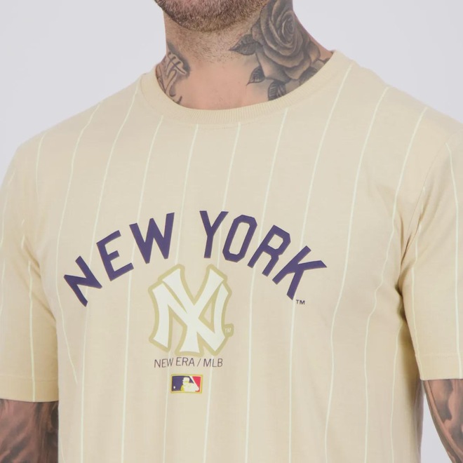 Composição: 100% Algodão Cor predominante: Bege Time: New York Yankees Gênero: Masculino Origem: Nacional Logo: Estampada Manga: Curta Gola: Careca Dimensões aproximadas (A x L): P: 74 x 51 cm M: 76 x 53 cm G: 78 x 55 cm GG: 80 x 57 cm