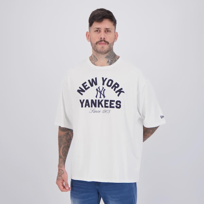 Composição: 100% Algodão Cor predominante: Branco Time: New York Yankees Gênero: Masculino Origem: Nacional Logo: Bordado Manga: Curta Gola: Careca Dimensões aproximadas (A x L): PP: 70 x 60 cm P: 72 x 62 cm M: 74 x 64 cm G: 76 x 66 cm GG: 78 x 68 cm EG: 80 x 70 cm