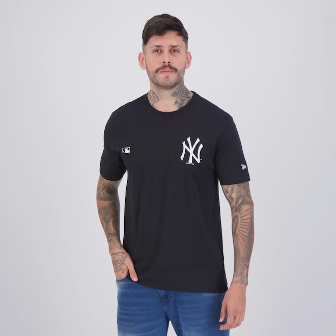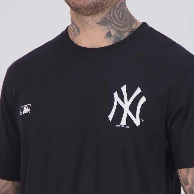 Composição: 100% Algodão Cor predominante: Preta Time: New York Yankees Gênero: Masculino Origem: Nacional Logo: Estampada Manga: Curta Gola: Careca Dimensões aproximadas (A x L): P: 73 x 52 cm M: 75 x 54 cm G: 77 x 56 cm GG: 79 x 58 cm