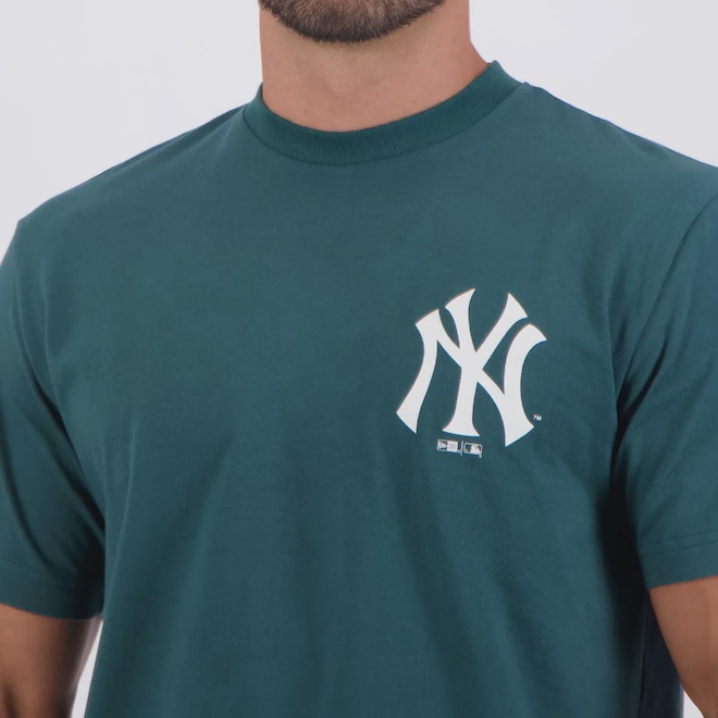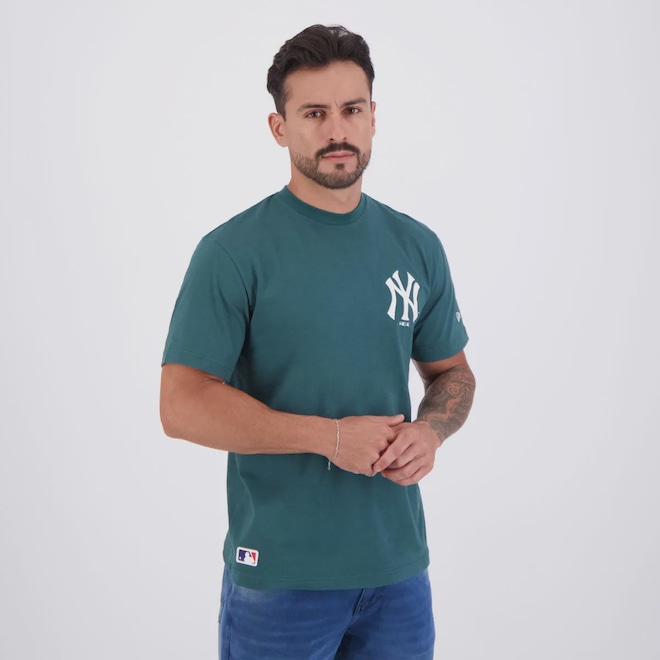 Composição: 100% Algodão Cor predominante: Verde Time: New York Yankees Gênero: Masculino Origem: Nacional Logo: Estampada Manga: Curta Gola: Careca Dimensões aproximadas (A x L): P: 70 x 54 cm M: 72 x 56 cm G: 75 x 58 cm GG: 78 x 61 cm