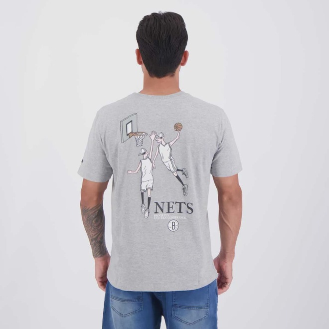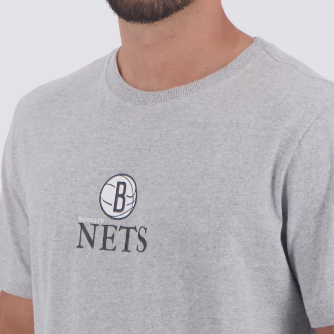Composição: 88% Algodão e 12% Poliéster Cor predominante: Cinza Indicado para: Casual Time: Brooklyn Nets Gênero: Masculino Origem: Nacional Logo: Estampado Manga: Curta Gola: Careca Dimensões aproximadas (A x L): P: 70 x 51 cm M: 72 x 53 cm G: 74 x 55 cm GG: 76 x 57 cm